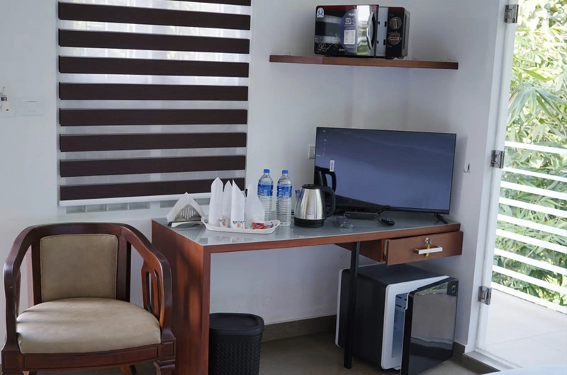 At Palatty's Resort at Athirappally – Athirappilly luxury meets nature with elegantly crafted rooms featuring premium interiors and modern amenities. Each room is thoughtfully designed to provide a homely yet grand experience, complete with Wi-Fi, air-conditioning, a television, a wardrobe, a coffee maker, and a microwave oven. Enjoy the captivating view of the Ezhattumugham River from your private balcony, perfect for unwinding after a day of exploration.